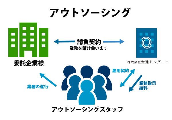 代行してもらう人のみを供給する派遣と違い、委託された業務を遂行する事が仕事になります。